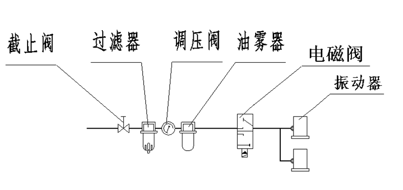 2)空氣過濾器要定期放水,避免空氣里的水進(jìn)入振動(dòng)器內(nèi)部,導(dǎo)致振動(dòng)器不能正常工作或損壞。